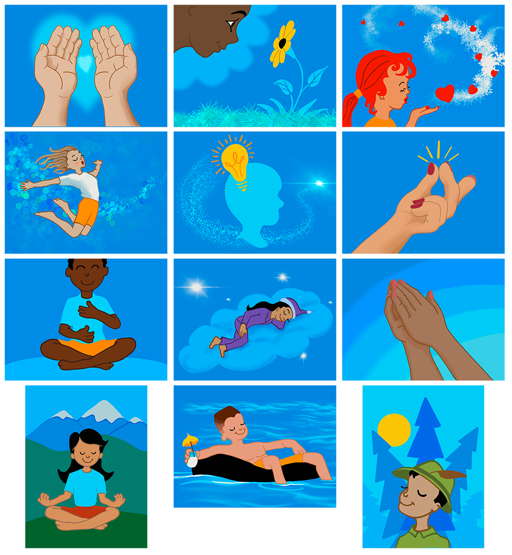 Graphics used to represent different meditations